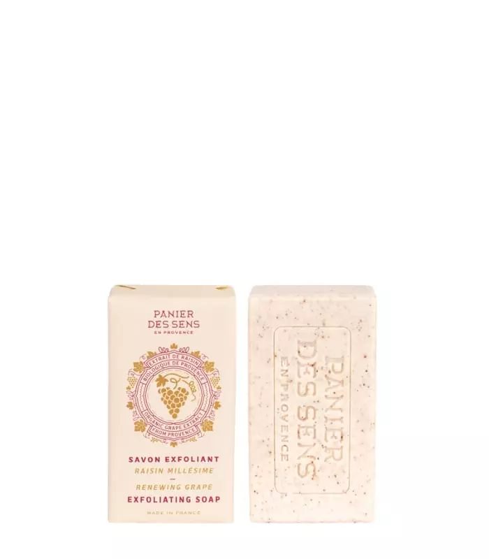 Enrichi en poudre de pépins de raisin, ce savon 2-en-1 nettoie et exfolie en douceur pour un usage quotidien. Il aide à lisser la peau en éliminant les cellules mortes. La peau est prête à recevoir les bienfaits d’un soin fermeté.