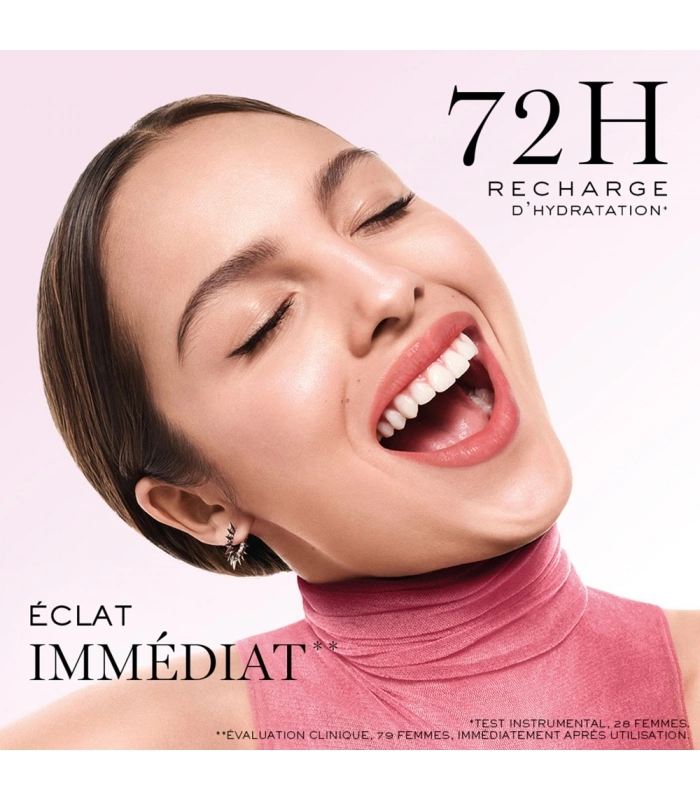 Sa formule enrichie en actifs hydro-apaisants hydrate instantanément la peau : +61% Hydratation(2)