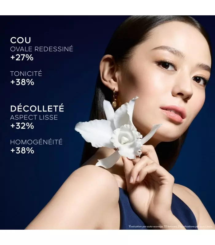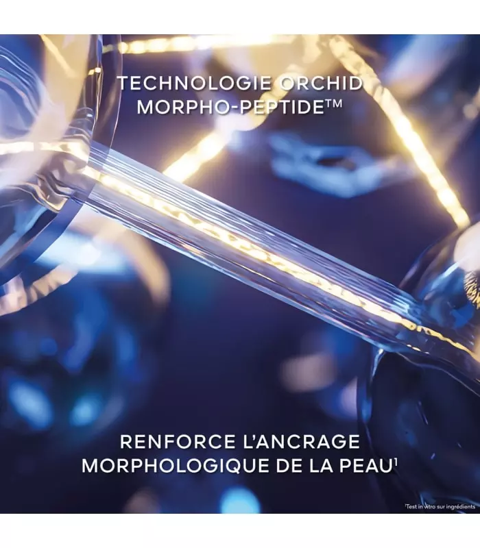 Elle allie la technologie Orchid Morpho-Peptideᵀᴹ, capable de renforcer les points d’ancrage de la peau impliqués dans le maintien de sa morphologie¹, à un peptide « Botox like² », au fort pouvoir défroissant³. Concentrés dans une formule seconde peau à la texture gainante, ils participent à l'efficacité de la Crème contre l'apparition des signes structurels visibles de l’âge. Les rides du cou et du décolleté sont estompées, le maintien du buste est amélioré, et l'ovale du visage est comme redessiné.