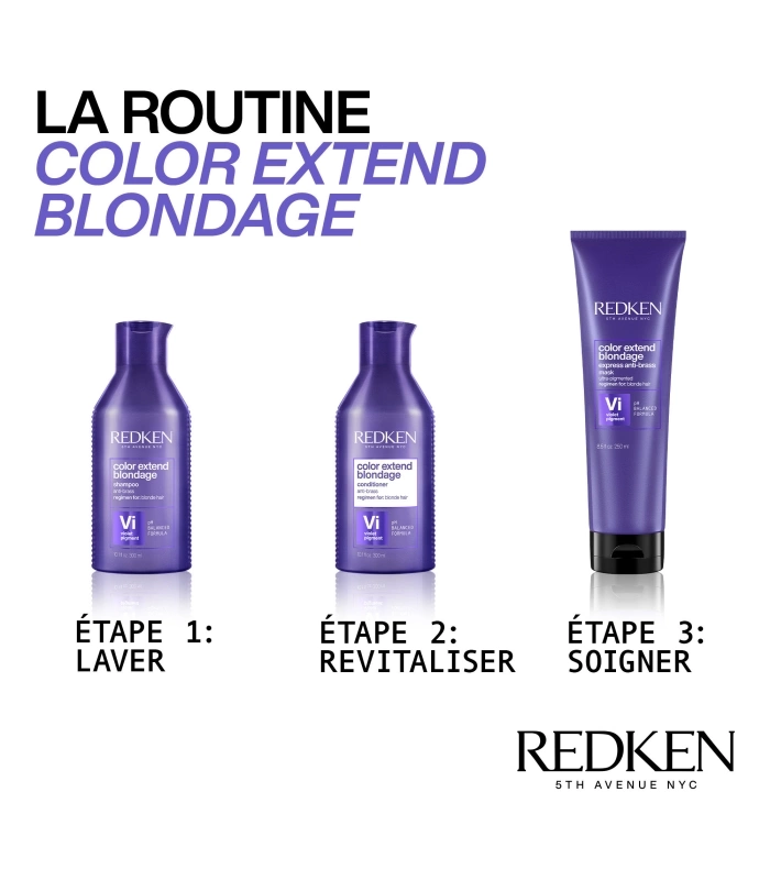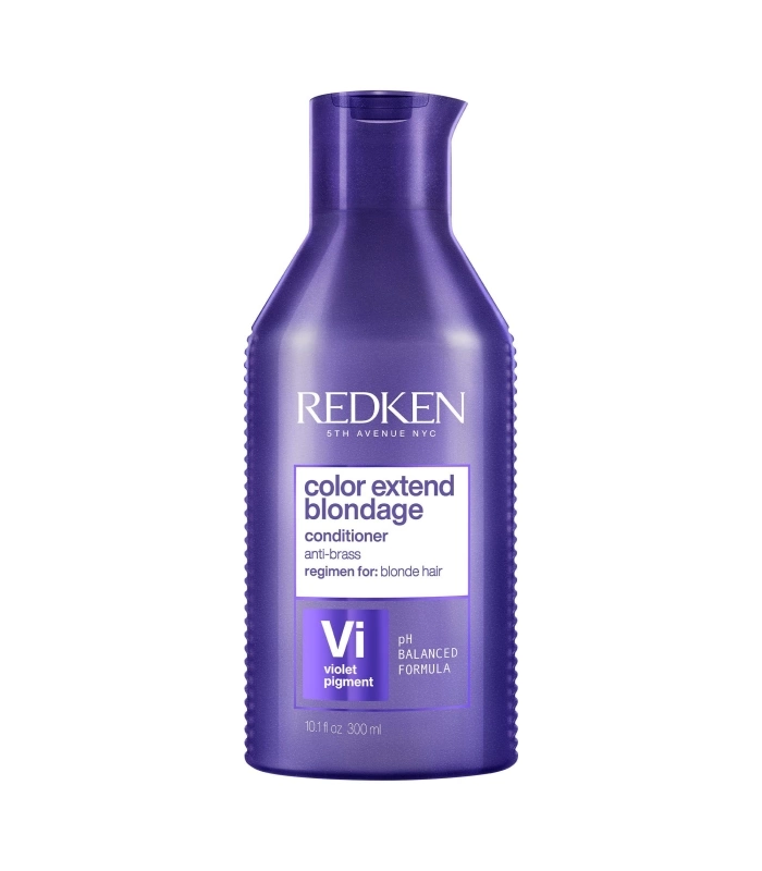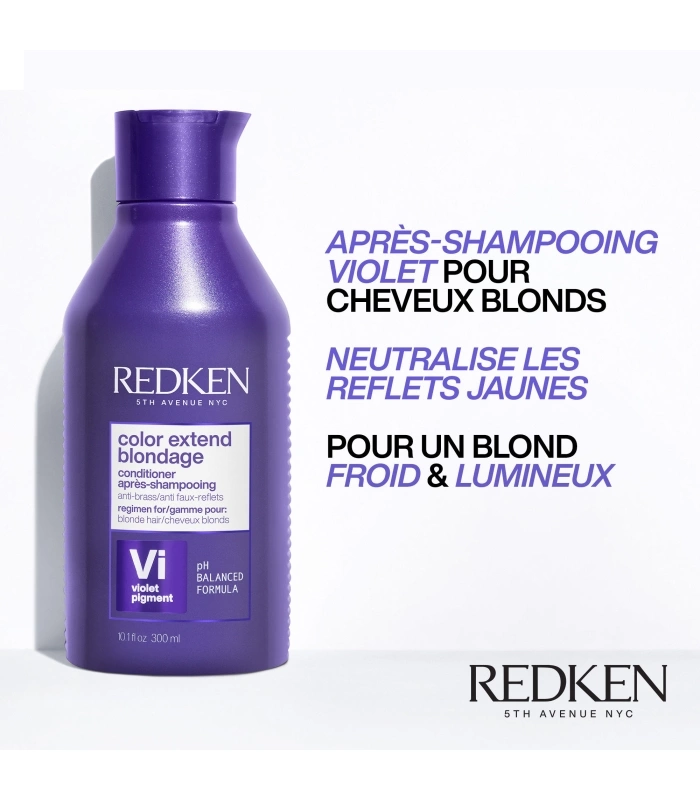 L'Après-Shampoing Color Extend Blondage neutralise les reflets jaunes et répare la fibre des cheveux blonds sensibilisés, grâce à des pigments violets* et à un complexe protéique triple-acides. Il convient aux cheveux blonds décolorés, méchés et naturels.