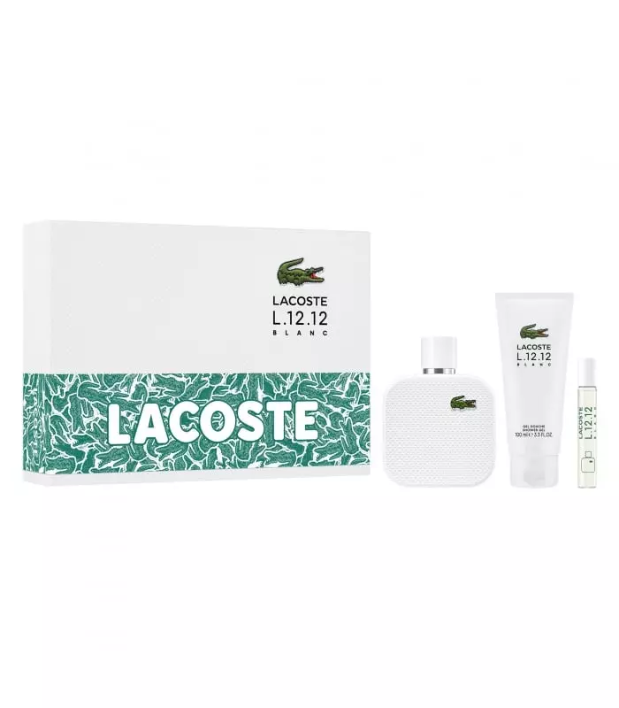 Ce coffret contient une Eau de Toilette L.12.12 Blanc 100ml, un Vaporisateur de Voyage 7,5ml ainsi qu'un Gel Douche 100ml.