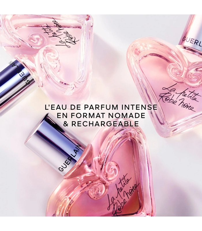 La Petite Robe Noire Eau de Parfum Intense est désormais disponible dans un format nomade et rechargeable : le Flacon Cœur. La rose iconique de La Petite Robe Noire est sublimée par des notes fruitées de myrtille et de framboise. Un sillage floral gourmand irrésistible.