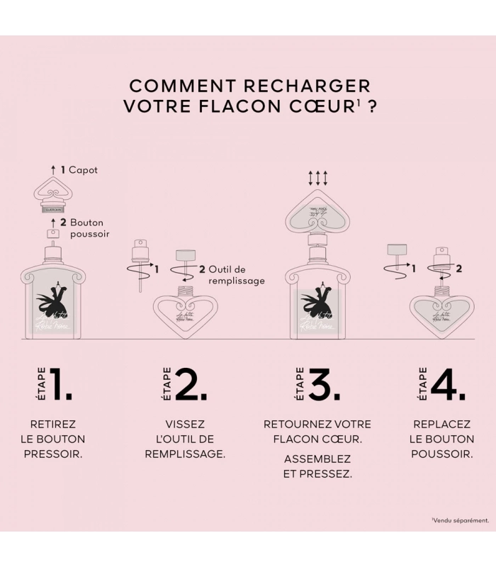Avec son format 20ml, le Flacon Cœur La Petite Robe Noire est une déclaration d’amour à la liberté : un objet nomade, spécialement conçu pour l’iconique parfum féminin de la Maison. Rechargeable, il se remplit grâce aux flacons classiques de La Petite Robe Noire Eau de Parfum Intense. Une nouvelle gestuelle facile à adopter.