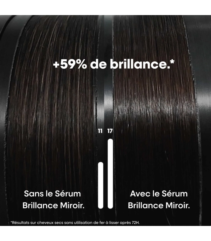Brillance instantanée et des résultats durables jusqu'à 10 lavages*. Formulé sans eau, l'Alpha-silane est un ingrédient de soin actif qui crée une couche protectrice à la surface de la fibre capillaire lorsqu'il est activé par la chaleur. Résultat : - Protection des cheveux colorés contre les dommages causés par les UV. - Effet anti frisottis jusqu'à 72H ** - Anti humidité (jusqu'à 80% d'humidité dans l'air**). - Protection contre la chaleur jusqu'à 230°C**. Les cheveux sont instantanément plus hydratés, lissés et plus doux et le résultat dure jusqu'à 10 shampoings*. Préserve la couleur intense du jour 1 jusqu'à 100 jours.*** Le résultat sur les 5 dimensions de la couleur**** : 1. Brillance : une brillance ultra intense. 2. Saturation : une couleur riche et vibrante. 3. Contraste : une profondeur optimale entre les différentes nuances. 4. Ton: les reflets indésirables sont neutralisés. 5. Luminosité : le niveau de clarté ou d'obscurité est bien préservé.