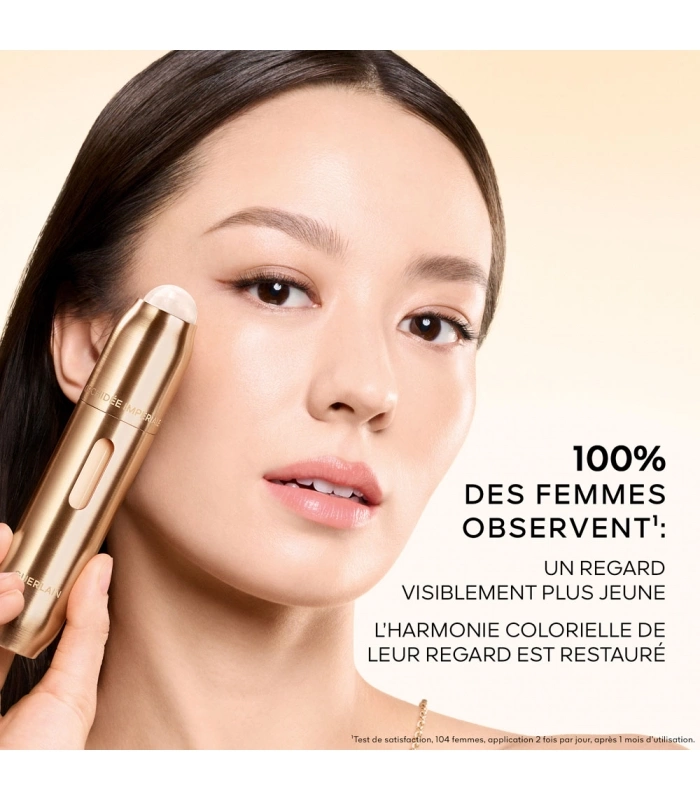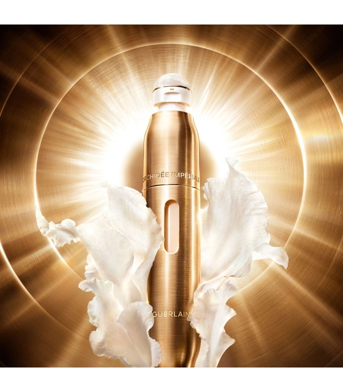 Guerlain crée Orchidée Impériale Gold Nobile Le Soin Concentré Regard pour raviver l’aura de jeunesse du regard. Ce soin combine la concentration d’un sérum à la richesse d’une crème au cœur d’une puissante formule composée à 95% d’ingrédients d’origine naturelle¹. Enrichi des pouvoirs de réjuvénation d’une orchidée prodigieuse, la Gold Nobile, combinée au Complexe Correcteur Chromatiqueᵀᴹ, il aide à restructurer les signes de jeunesse et restaurer l’harmonie colorielle d’un regard éclatant de jeunesse. Son design high tech² est orné d’un outil de massage intégré en pierre de Gua Sha qui permet de doubler l’efficacité du soin sur les rides de la patte d’oie³.
