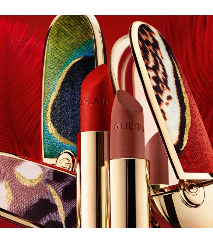 Dans le cadre la collection Majestic Feathers, Rouge G s’offre un nouveau “vestiaire” collector en édition limitée. Son écrin doré aux lignes fuselées, s’habille d’un trio de fourreaux précieux, inspirés des robes d’oiseaux majestueux :