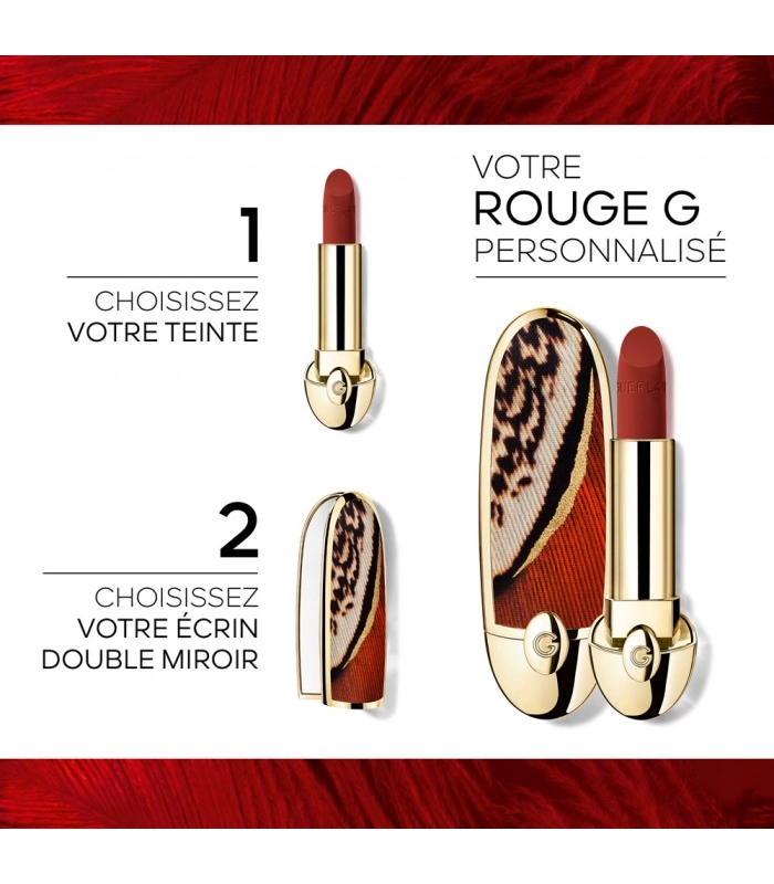 Associez cet écrin exclusif à la recharge Rouge G de votre choix parmi une large gamme de nuances satin ou mates velours hautement pigmentées.