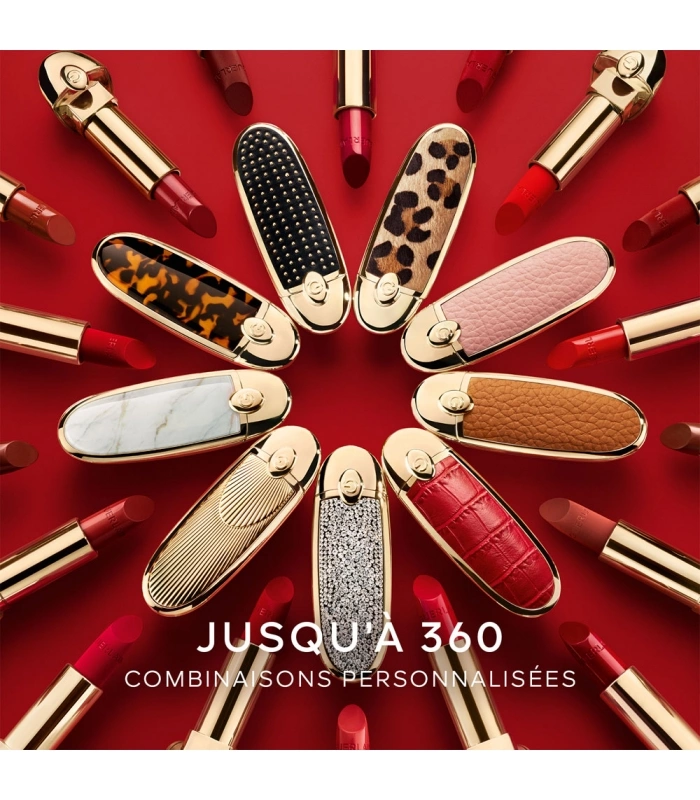 Pour votre premier achat Rouge G, choisissez une teinte et un écrin pour composer votre rouge à lèvres complet. Pour les suivants, rechargez la teinte ou changez d’écrin selon vos envies.