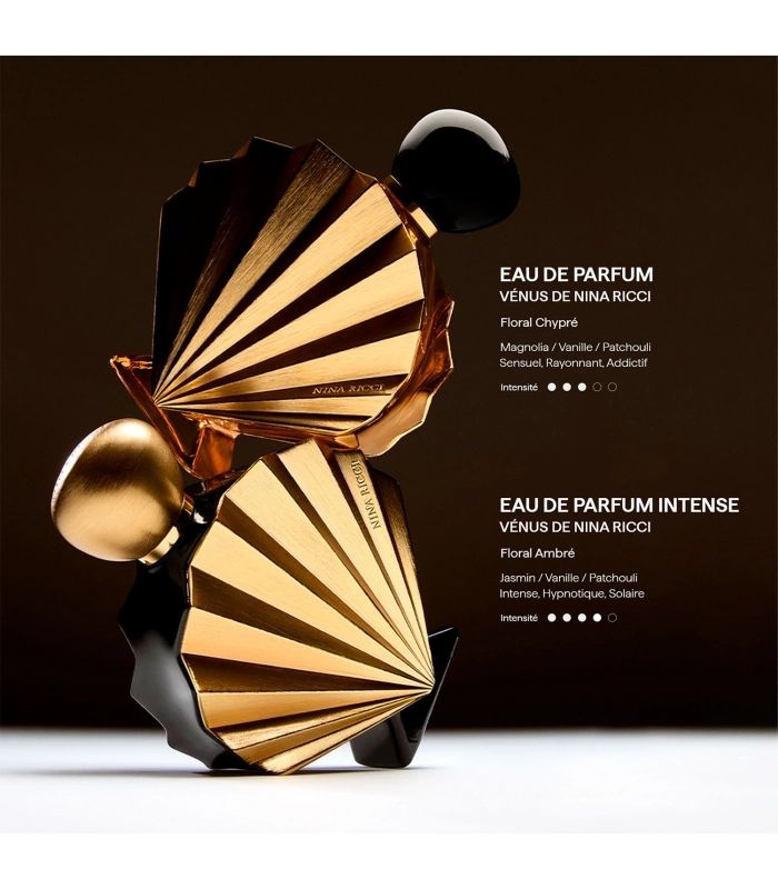 LA NOUVELLE INTENSITÉ DE L'AMOUR DE SOI. La Maison Nina Ricci dévoile un nouveau chapitre de sa mythologie moderne. Vénus de Nina Ricci se réinvente sous une lumière intense et hypnotique. Plus sensuelle, plus captivante, cette nouvelle Eau de Parfum Intense invite chaque femme à s’aimer sans compromis, à rayonner d’une aura qui captive et inspire.