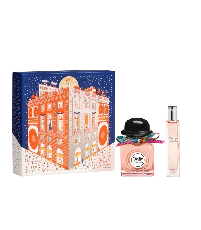 Le coffret est composé d’une eau de parfum Twilly d’Hermès de 50 ml et d’une eau de parfum Twilly d’Hermès nomade de 15 ml.