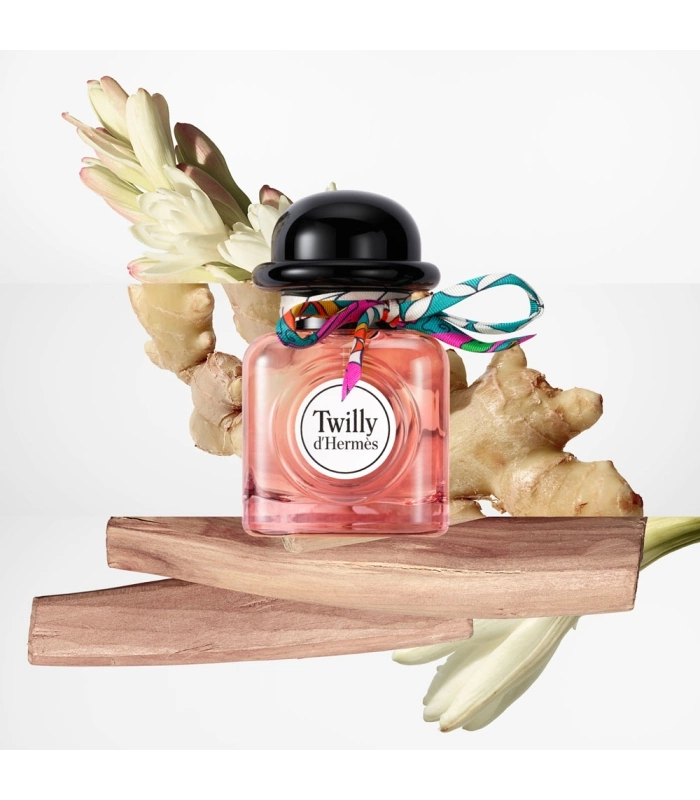 C'est avec cet esprit que Christine Nagel a composé Twilly d'Hermès. Gingembre, tubéreuse et santal y sont détournés pour devenir du mordant qui brûle, de l’attraction qui trouble, du charnel qui se dévoile. Ultime fantaisie, un lien de soie noué à la main vient souligner avec malice le flacon. Chaque lien de soie est unique.