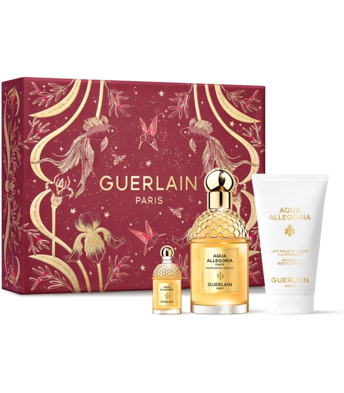 - L’Eau de Parfum Aqua Allegoria Mandarine Basilic Forte (75 ml et une miniature 7,5 ml). Une mandarine dorée associée à un basilic vibrant et sublimée par la chaleur du bois de santal et la délicieuse teinture de vanille.