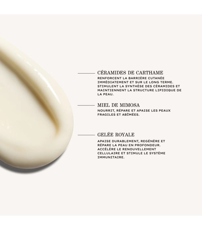 Cette crème riche et enveloppante, enrichie en gelée royale, offre une nutrition profonde et un réconfort immédiat pour les peaux sèches et très sèches.