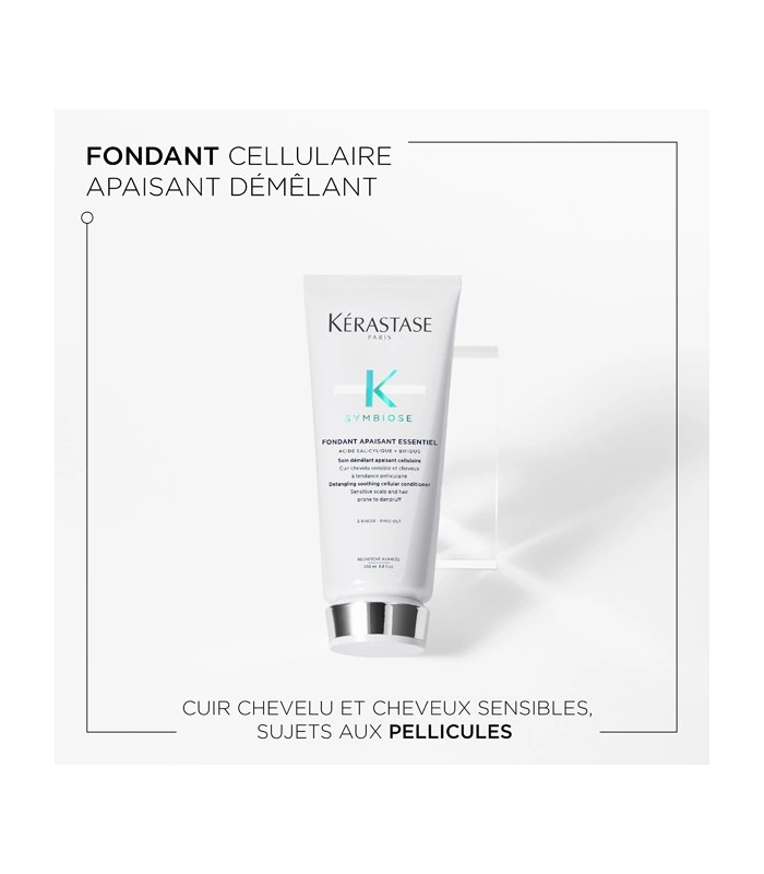 Le Fondant Apaisant Essentiel Symbiose a été spécialement conçu pour les cuirs chevelus sensibles : Il réduit la sensibilité du cuir chevelu dès sa première application, et permet d'apaiser et de préserver votre cuir chevelu tout en hydratant vos longueurs.