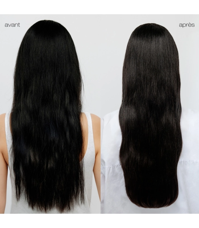 Après-lavage : Répartissez 2 gouttes sur cheveux humides ou secs pour sceller les pointes fourchues et révéler une brillance lumineuse.