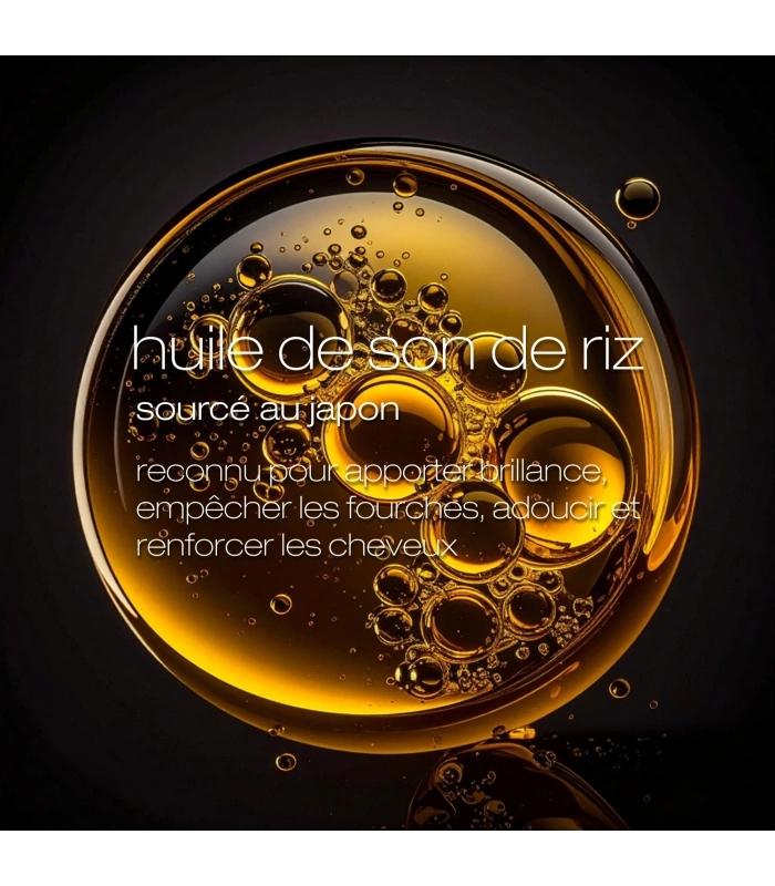 Au cœur de cette formule exceptionnelle, l'huile de son de riz, un ingrédient japonais ancestral reconnu pour ses propriétés illuminatrices et nourrissantes, s'associe au tétra-peptide, un actif de bio-ingénierie de pointe qui pénètre la fibre capillaire pour réparer les liaisons endommagées et restaurer la chevelure de l'intérieur.