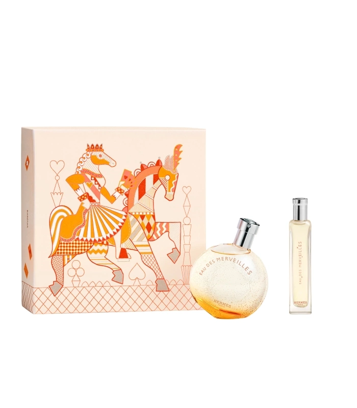 Le coffret est composé d’une Eau de Toilette Eau des Merveilles de 50 ml et d’une Eau de Toilette Eau des Merveilles nomade de 15 ml.
