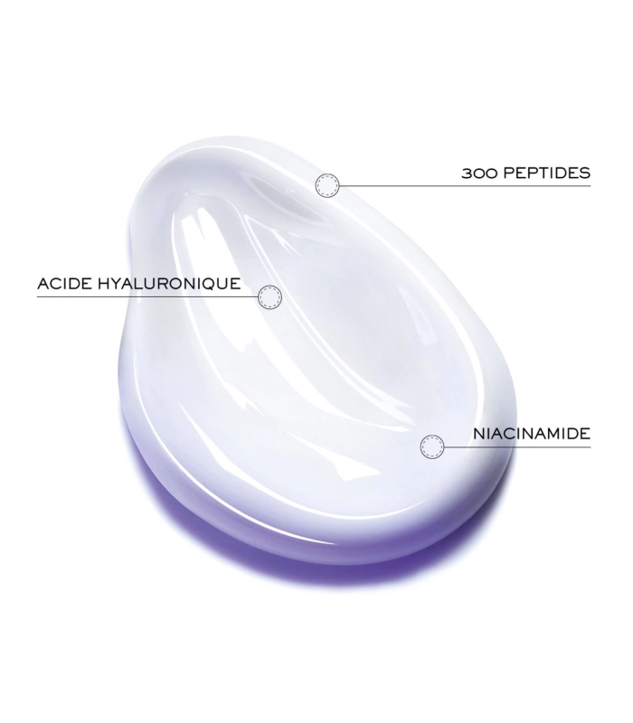 Cette puissante technologie, qui inclue du Mexoryl 400, cible les UVA ultra-longs responsables du vieillissement de la peau. Enrichie de 300 Peptides, d’Acide Hyaluronique et de Niacinamide, cette formule innovante offre une action anti-âge complète :