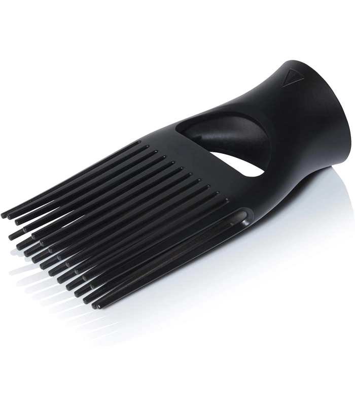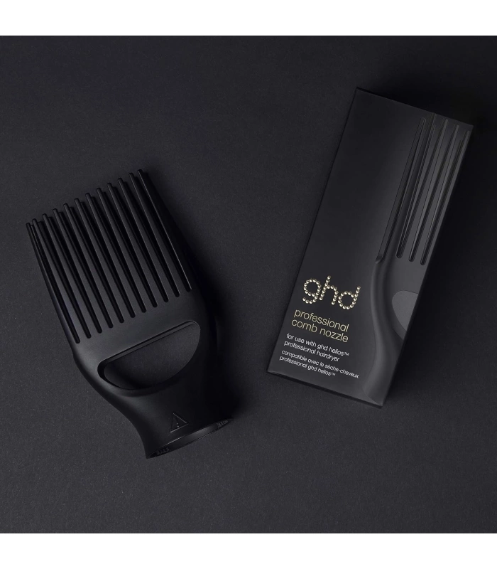 L'embout peigne Afro ghd pour sèche-cheveux Hélios™ est l'accessoire professionnel de référence pour les cheveux texturés, bouclés, frisés ou crépus. Développé en étroite collaboration avec les meilleurs coiffeurs professionnels, cet embout spécialement conçu est équipé d'une double rangée de dents renforcées et effilées qui peignent, démêlent et détendent la fibre capillaire en toute douceur, sans casser ni abîmer les cheveux. Fixé au sèche-cheveux ghd Hélios™, il permet de décoller les racines et de sculpter la chevelure pour un brushing naturel, volumineux et plein de mouvement, de la racine aux pointes. Un accessoire incontournable pour sublimer les textures naturelles avec un fini digne des plus grands salons.