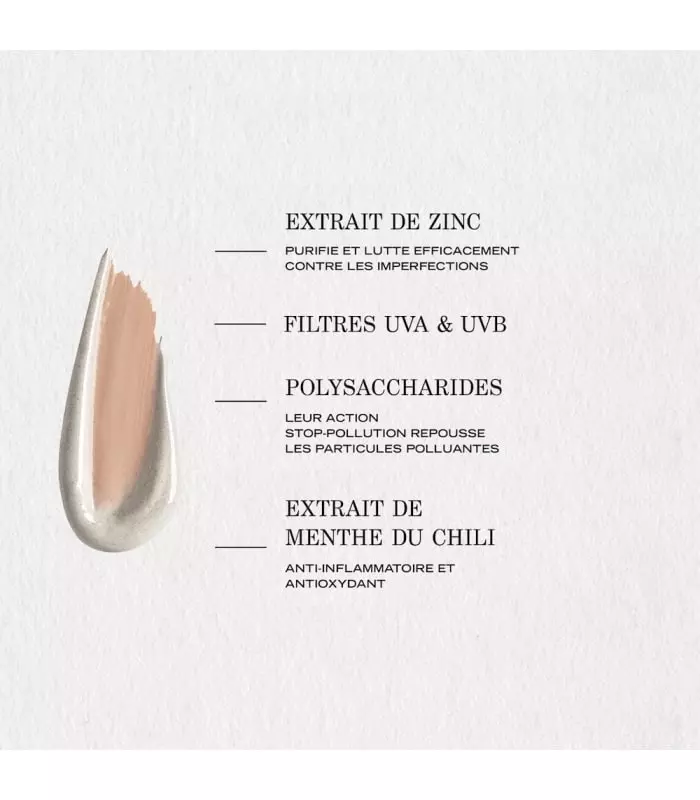 For combination to oily skin prone to imperfections, this chameleon care tinted with bamboo powder and encapsulated pigments camouflages imperfections, purifies and mattifies while protecting the skin from pollution and UV rays. The skin is unified, matified, clear and luminous.