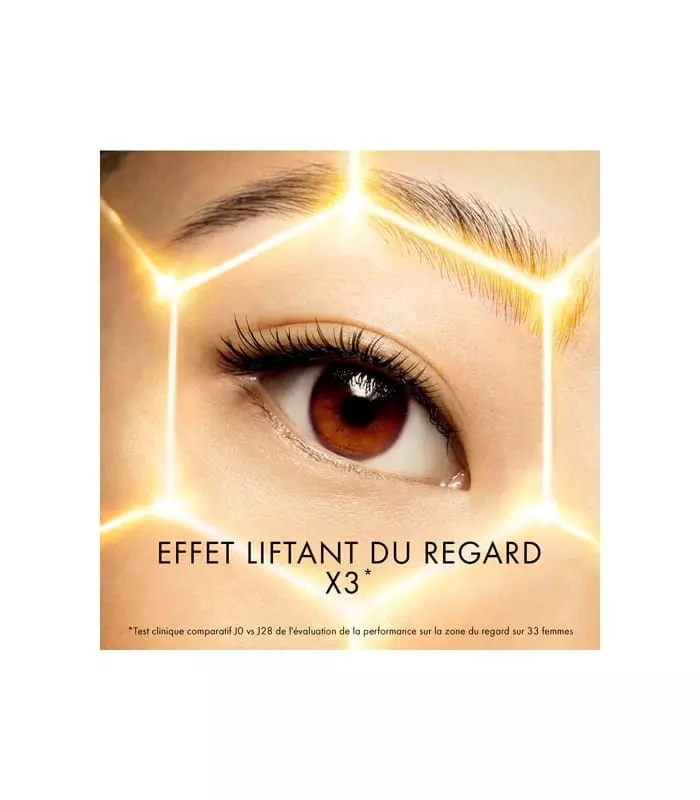 Concentrated efficiency, its formula composed of 94% of ingredients of natural origin* offers a spectacular lifting effect on the eyes.