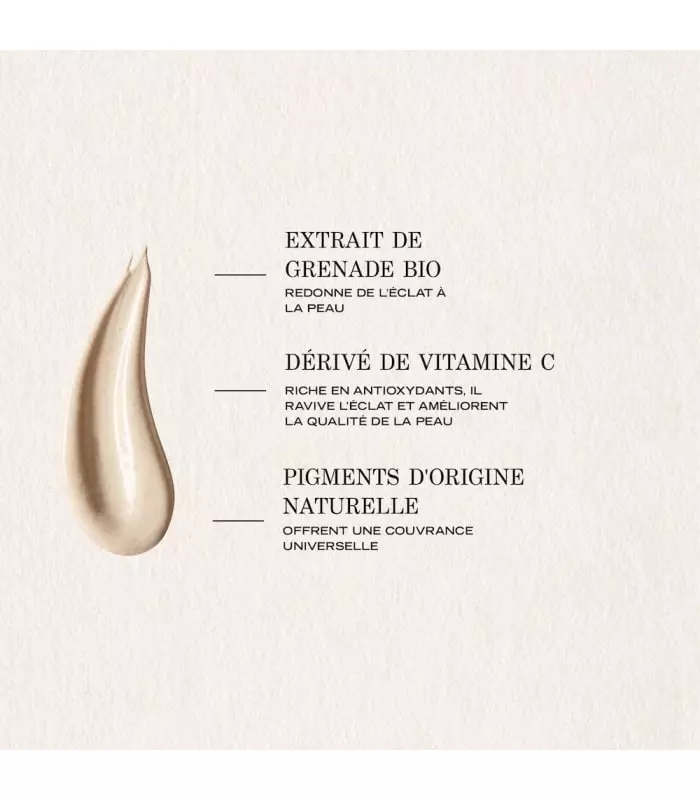 INGREDIENTS : AQUA (WATER) ● DICAPRYLYL CARBONATE ● DIBUTYL ADIPATE ● ETHYLHEXYL TRIAZONE ● PROPYLENE GLYCOL ● CI 77891 (TITANIUM DIOXIDE) ● BIS-ETHYLHEXYLOXYPHENOL METHOXYPHENYL TRIAZINE ● CETEARYL ALCOHOL ● CETEARYL GLUCOSIDE ● DIETHYLAMINO HYDROXYBENZOYL HEXYL BENZOATE ● GLYCERIN ● SYNTHETIC FLUORPHLOGOPITE ● BAMBUSA ARUNDINACEA STEM POWDER ● PUNICA GRANATUM FRUIT EXTRACT ● LYCIUM BARBARUM FRUIT EXTRACT ● EUTERPE OLERACEA FRUIT EXTRACT ● ISOPROPYL MYRISTATE ● SODIUM ASCORBYL PHOSPHATE ● TOCOPHERYL ACETATE ● XANTHAN GUM ● TOCOPHEROL ● SODIUM STEAROYL GLUTAMATE ● SODIUM POLYACRYLATE ● ACRYLATES/AMMONIUM METHACRYLATE COPOLYMER ● CITRIC ACID ● TRIETHYL CITRATE ● SODIUM CHLORIDE ● TIN OXIDE ● SODIUM BENZOATE ● CHLORPHENESIN ● POTASSIUM SORBATE ● O-CYMEN-5-OL ● SORBIC ACID ● PARFUM (FRAGRANCE) ● CI 77499 (IRON OXIDES) ● CI 77491 (IRON OXIDES) ● CI 77492 (IRON OXIDES) ● CI 19140 (YELLOW 5) ● CI 14700 (RED 4)