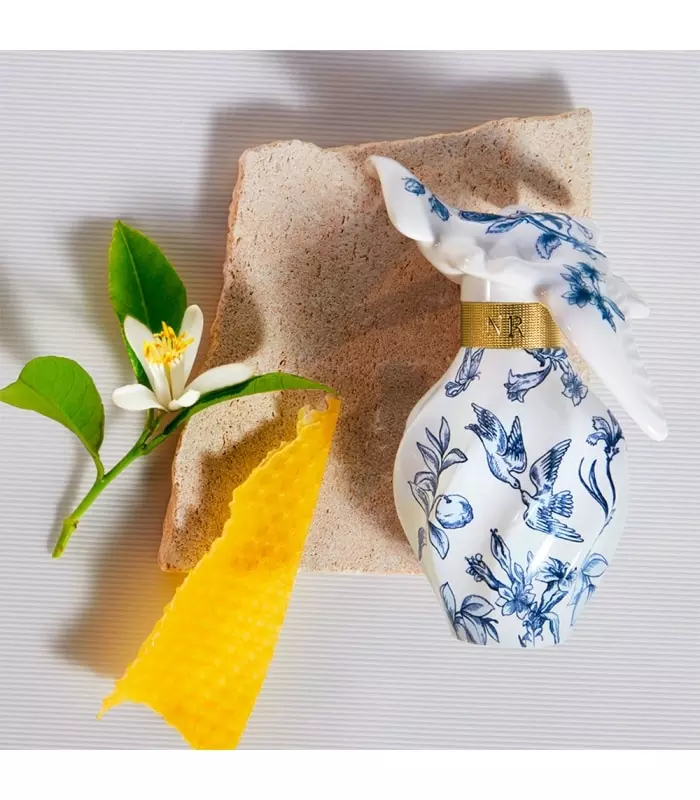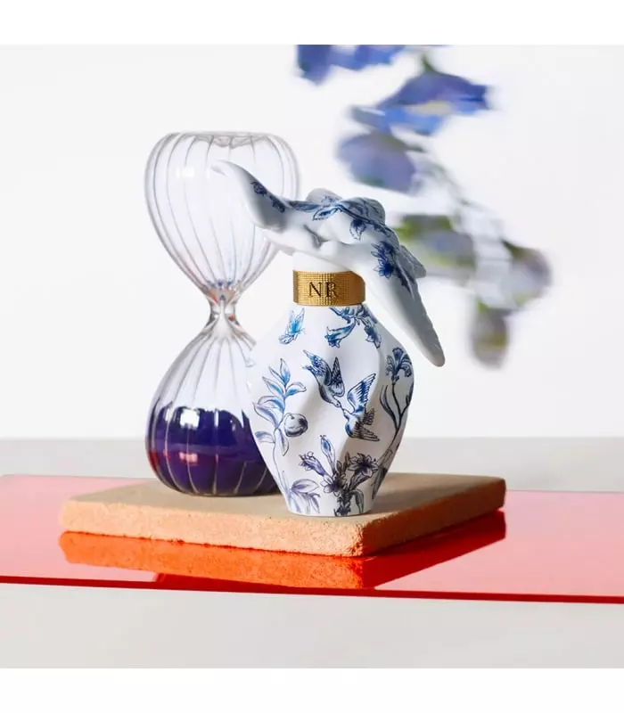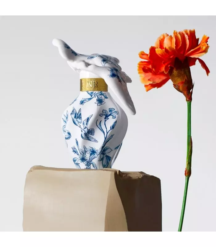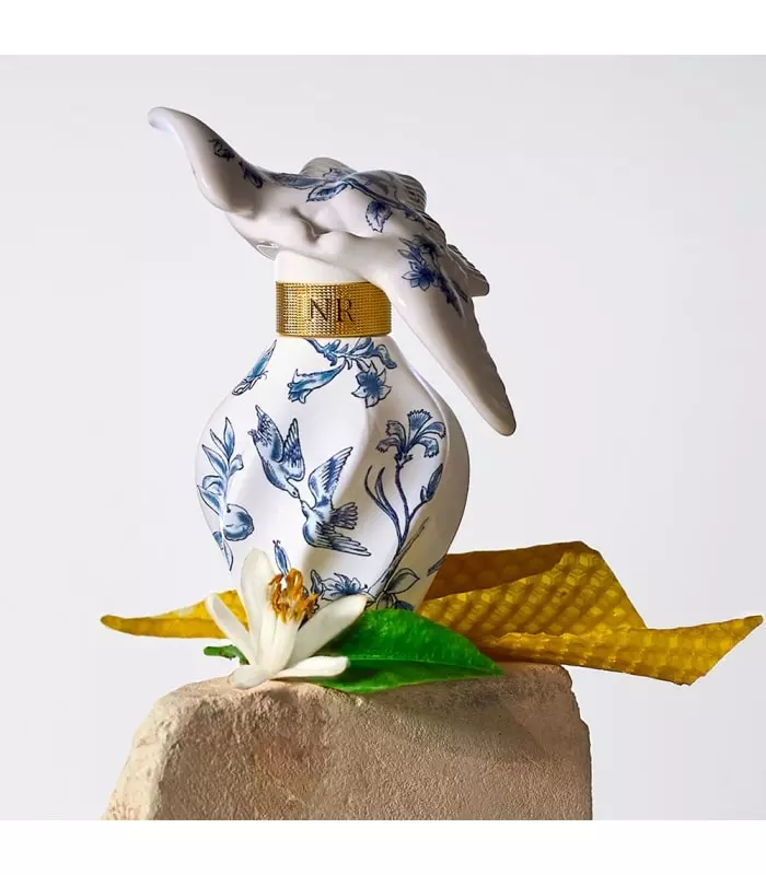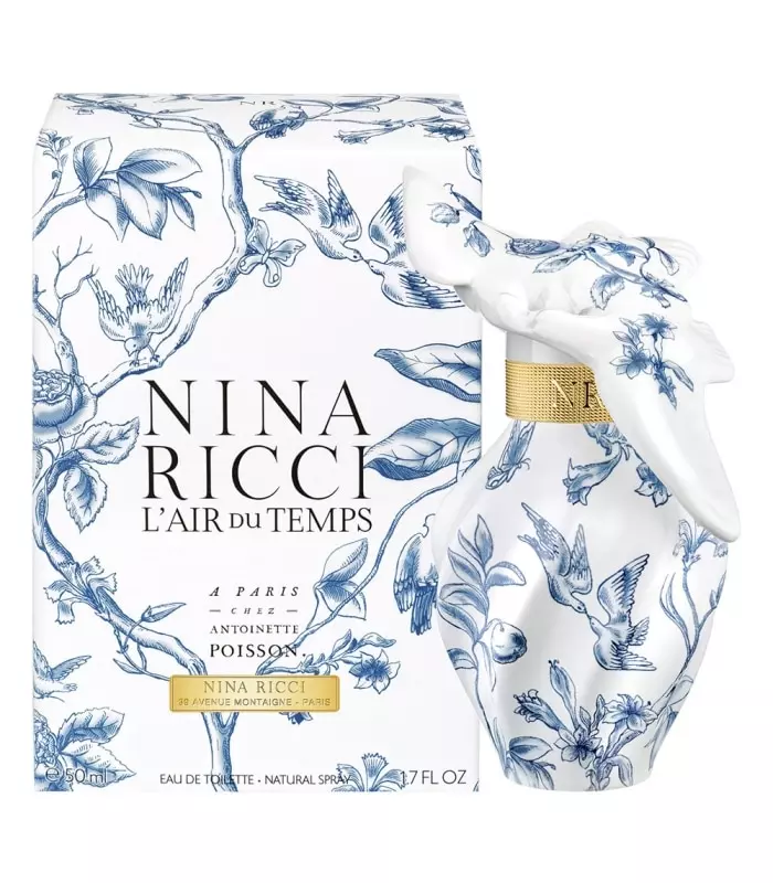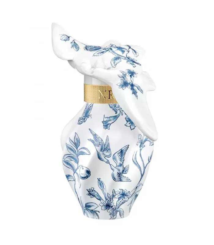 Discover the limited edition of L'Air du Temps by Nina Ricci: a luminous eau de toilette in a sumptuous white and blue Toile de Jouy. The result of a collaboration between the designer and Antoinette Poisson, her signature perfume bottle, topped with two doves on the cap, is reinvented in a poetic envelope celebrating French craftsmanship. At its heart is a fresh, floral fragrance for women, lightly blending notes of mimosa and orange blossom with the warmth of tonka bean and honey, topped with petitgrain and mandarin. Wrap yourself in a radiant fragrance with Nina Ricci's limited edition L'Air du Temps eau de toilette.