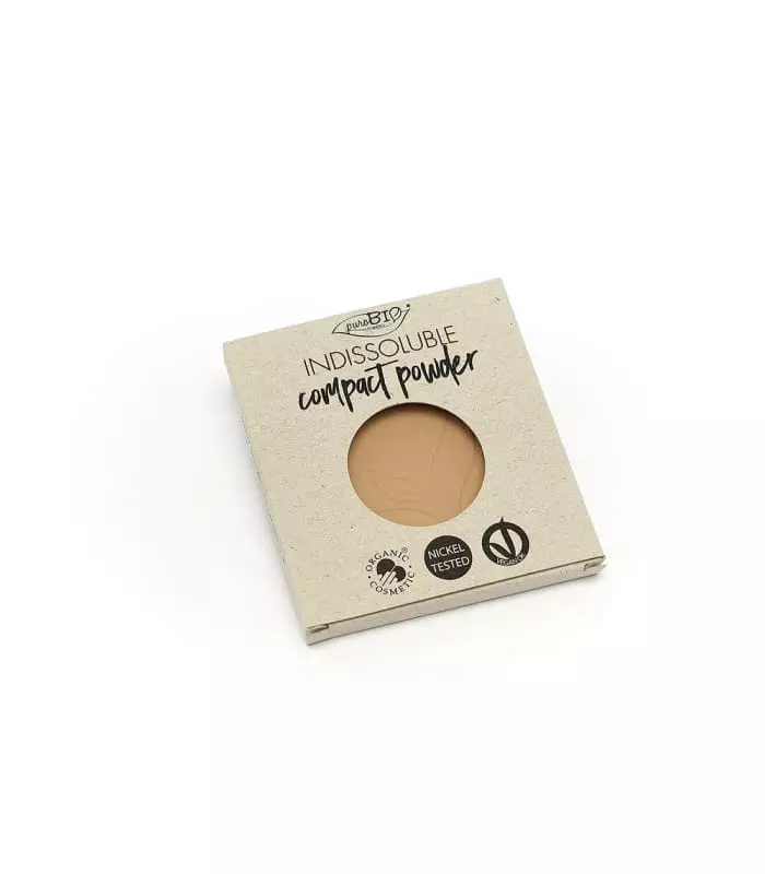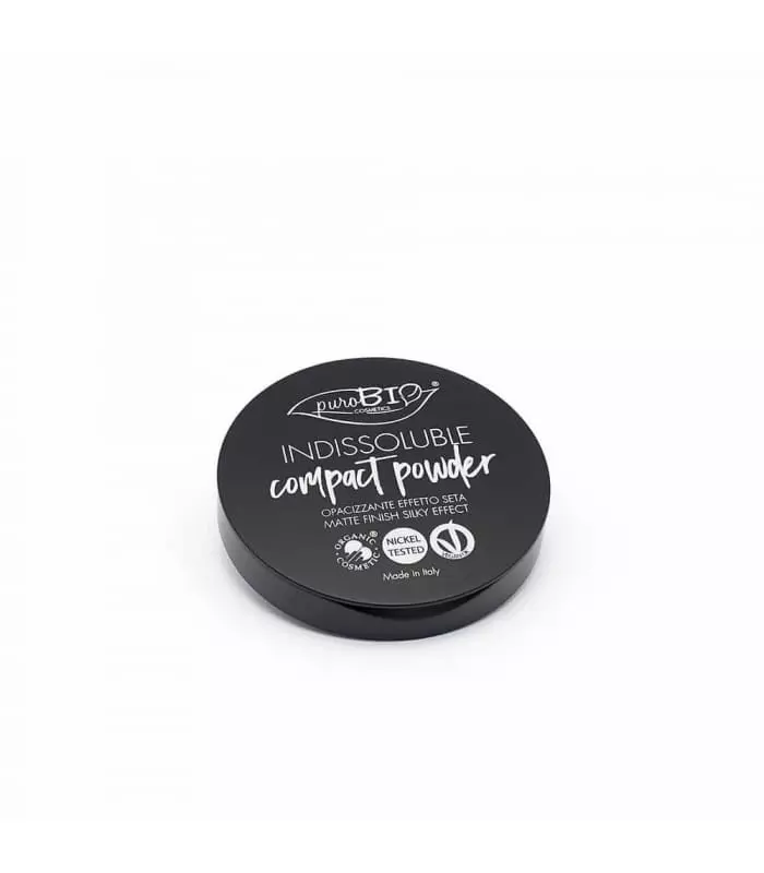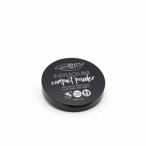 INDISSOLUBLE powder matifies the complexion thanks to its composition of silica, corn starch and rice powder.