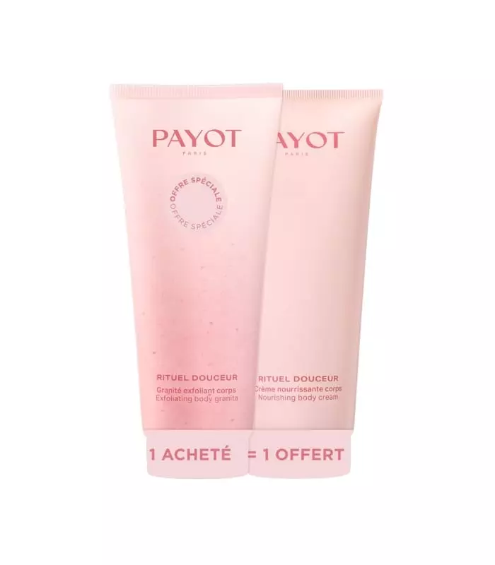 Discover our special offer: for every 1 Granité Exfoliant Corps 200 ML purchased, PAYOT offers you a Nourishing Body Cream 200 ML! This Gentle Ritual Duo illuminates, nourishes and sublimates your skin.