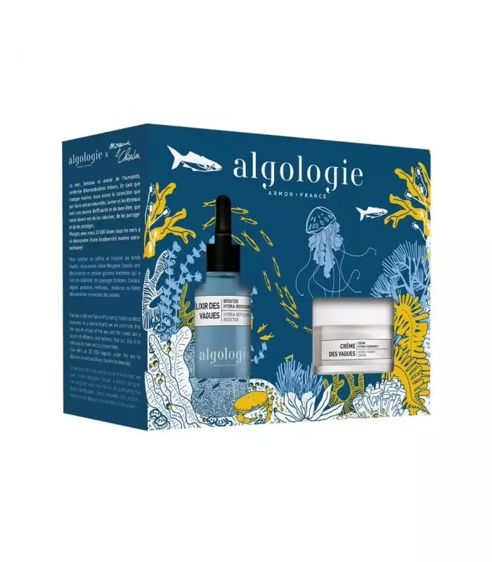 Dive 20,000 leagues under the sea to discover the beauty of marine biodiversity and the extraordinary benefits of marine active ingredients. This Wave duo of elixir and cream contains Algo 4 Complex [patent] & Hyaluronic Acid.
