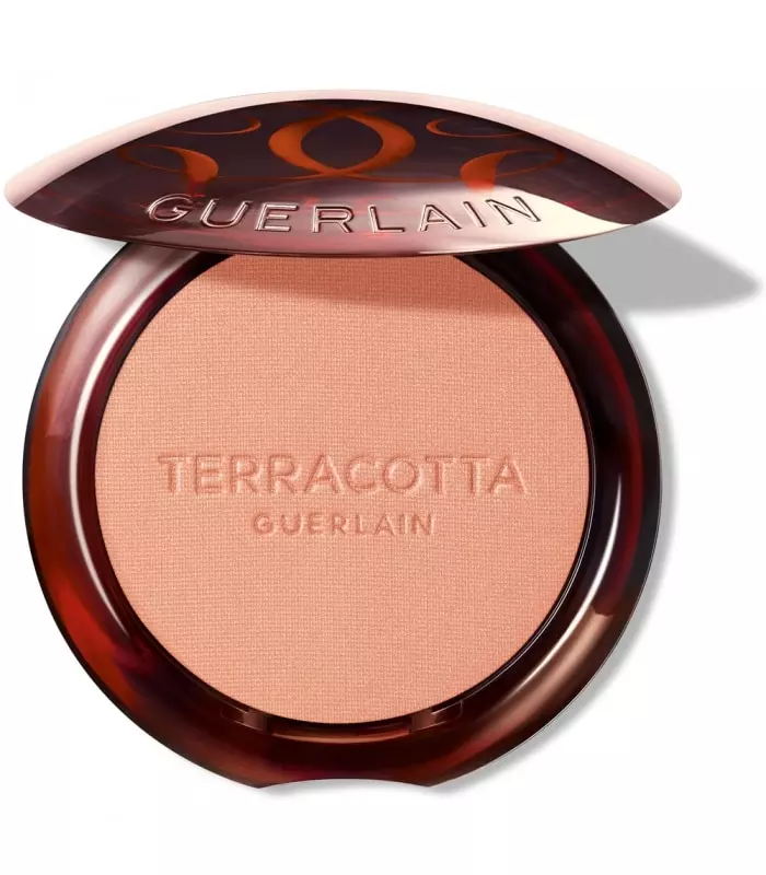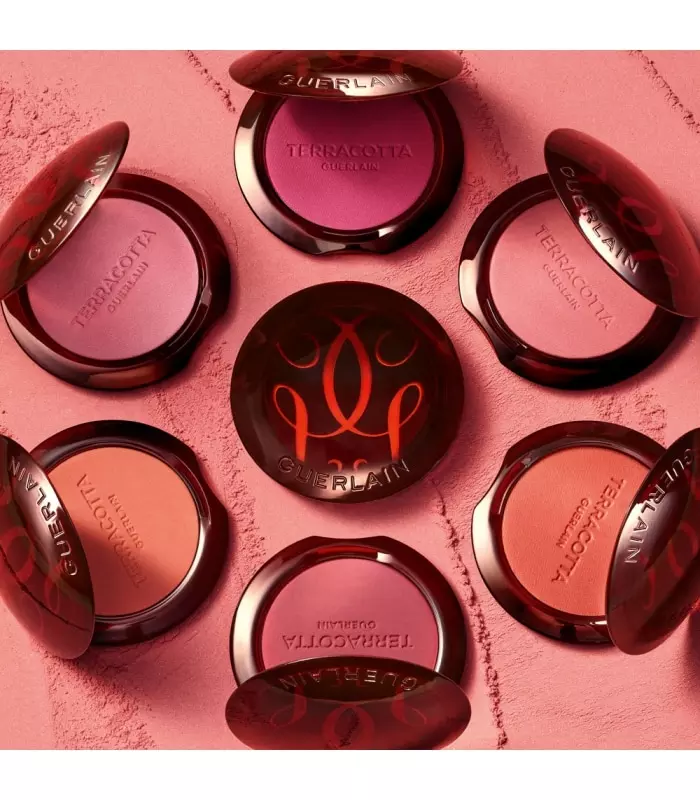 For an even more natural result, apply Terracotta Blush to the centre of the cheekbone where the skin spontaneously turns pink. To add depth and contrast, mix a warm and a cool shade of blush to create a unique, individual colour.