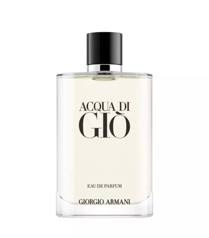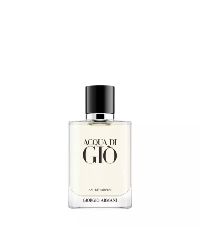 The ACQUA DI GIÒ EAU DE PARFUM bottle is elegant and modern, with a cap embossed with the Giorgio Armani monogram.