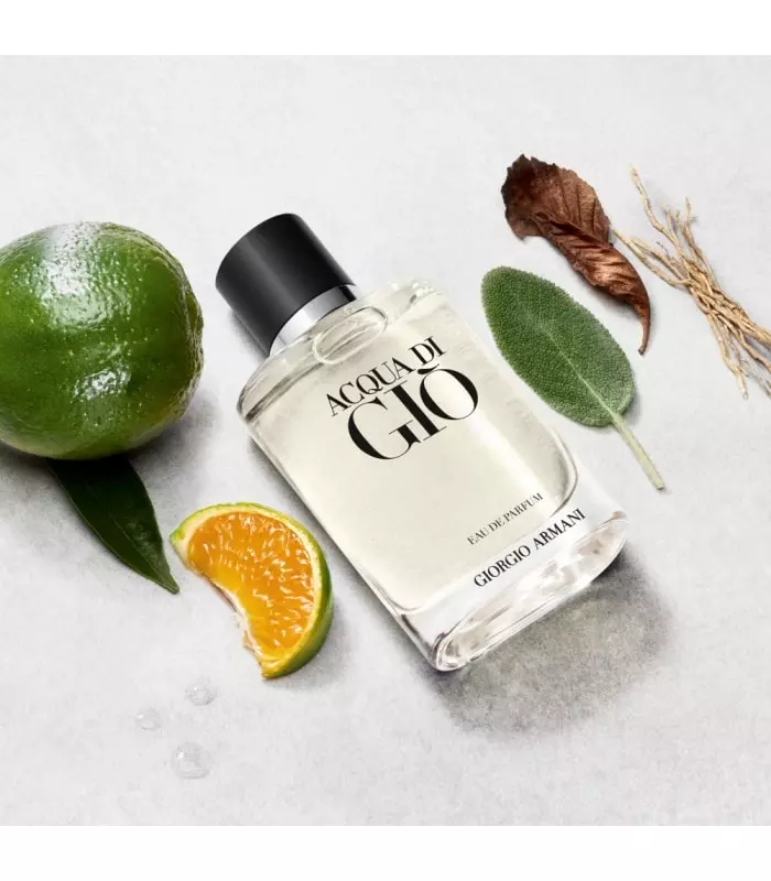 ACQUA DI GIÒ EAU DE PARFUM captures the powerful freshness of the sea. First, the fragrance opens with marine and green mandarin notes, echoing Giorgio Armani's Mediterranean roots. Then, clary sage from Provence, developed for Giorgio Armani and sustainably harvested, mingles with the freshness of lavandin and geranium from Madagascar. Finally, Patchouli essence from Guatemala is combined with Vetiver from sustainable sources in Haiti.