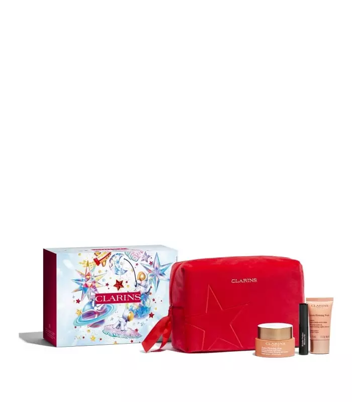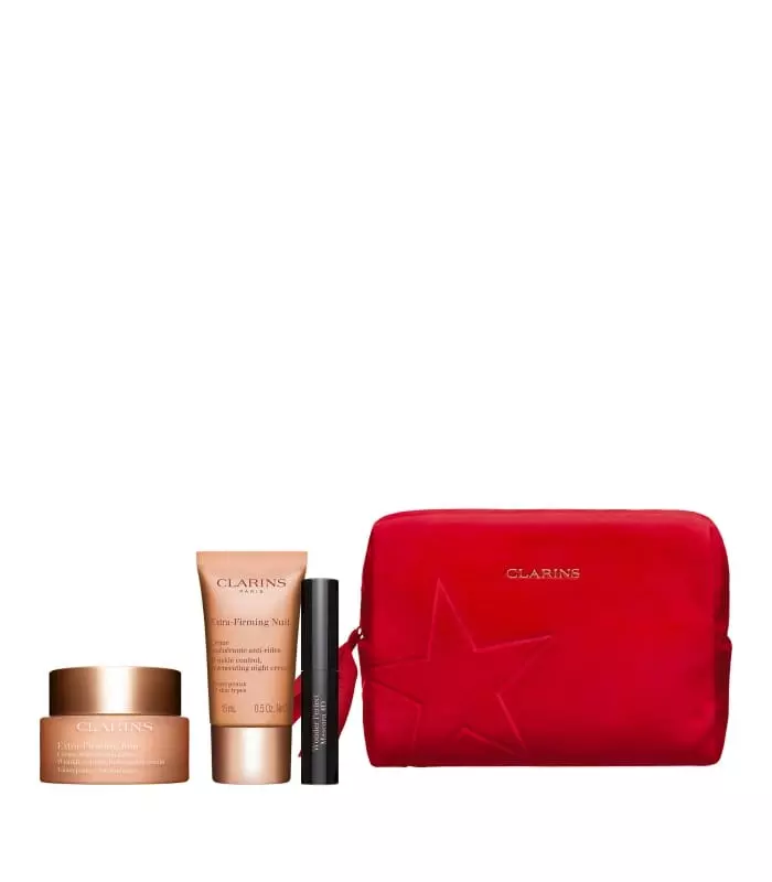 The Extra-Firming Day & Night duo firms, plumps and reduces the appearance of wrinkles, with an immediate smoothing effect. The oval of the face is reshaped, the complexion is smoother and the skin is radiant with beauty. Discover the Double Serum innovation: Clarins' iconic anti-aging serum is reinvented in a new generation inspired by the science of epigenetics for exceptional effectiveness on the visible signs of aging. The finishing touch: Wonder Perfect 4D Mascara for perfect eyes in 4 dimensions: volume, length, curvature and high definition.