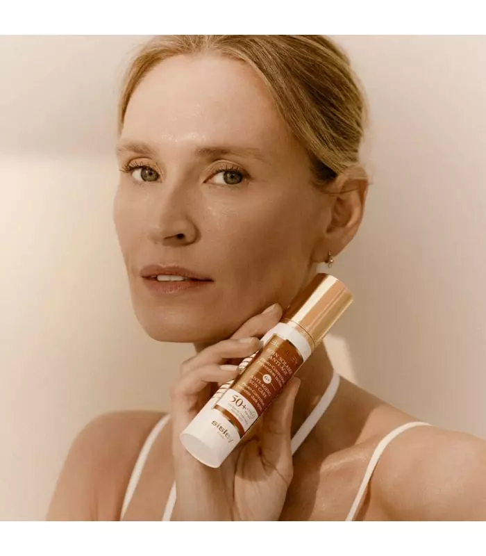 This innovative sun care product combats glycation**, targeting wrinkles and loss of elasticity, for protected skin and a luminous glow.