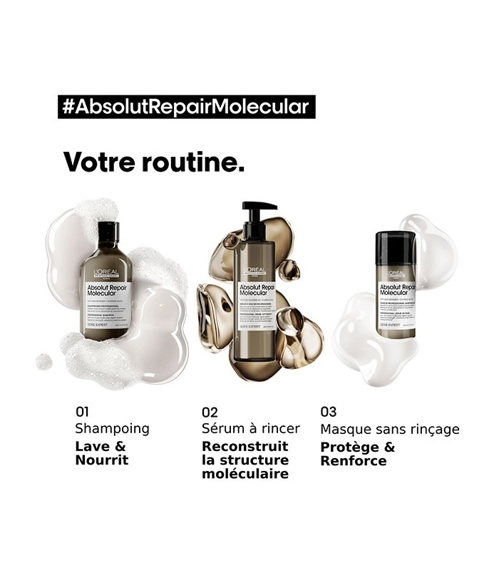 Inspired by ultra-concentrated skin serums, it repairs hair's macro-molecular structure without weighing it down.