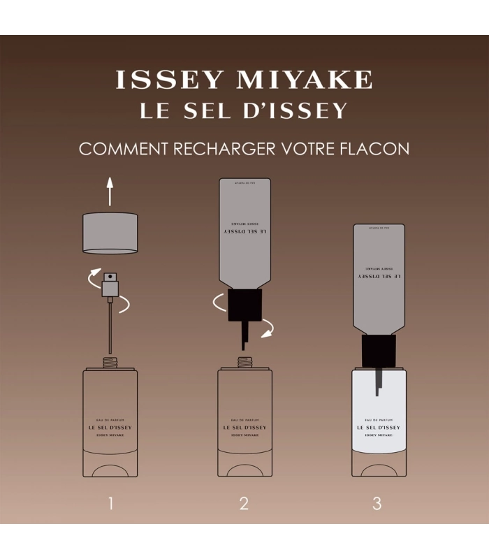 Start with Le Sel d'Issey Eau de Toilette shower gel, then spray Le Sel d'Issey Eau de Parfum onto your skin, focusing on your pulse points (neck, wrists, inner elbows) to enhance your fragrance experience.