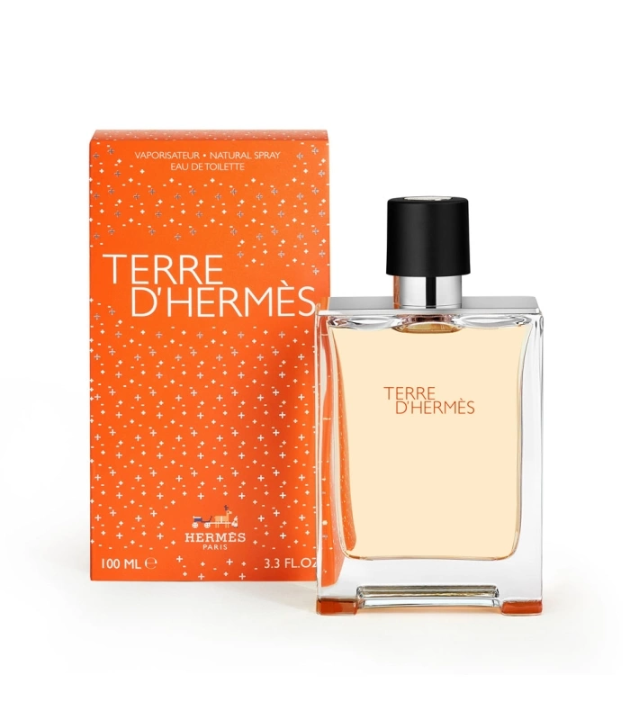 This festive case contains a 100 ml bottle of Terre d'Hermès Eau de Toilette.