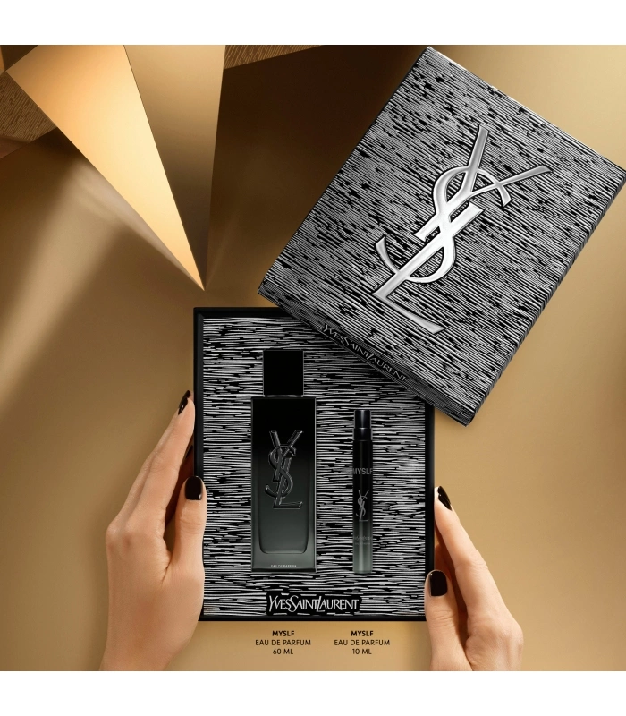 YSL Beauty invites you to celebrate the festive season in style with a touch of couture. Treat yourself to this magnificent brushed silver gift set containing: MYSLF Eau de Parfum 60 ml and MYSLF Eau de Parfum 10 ml travel size. Get ready to shine on the most anticipated night of the year. MYSLF, for the man you are, nuanced and unique. An affirmation of modern masculinity, embracing all its facets and emotions. nbsp;