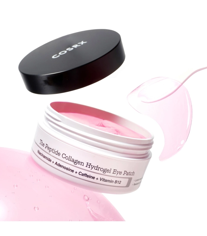 Treat your eyes to expert care with COSRX Peptide Collagen Hydrogel Eye Patches. Specially formulated to target signs of fatigue and aging around the eyes, these patches combine a complex of four peptides, collagen, niacinamide, and caffeine to instantly restore radiance, firmness, and hydration to the delicate eye area.