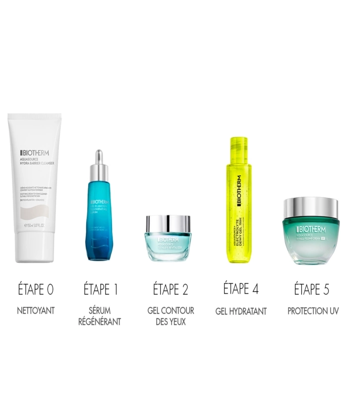 When to use it: Apply Aquasource+ Electrolyte Dewy Gel 100H every morning and/or evening to clean skin, either before your usual moisturizer or in place of it. How to use it: 1. Take a micro dose in the palm of your hands. 2. Gently press it onto your face and neck, taking care to avoid the eye area. 3. Gently press your fingertips onto your forehead and cheeks to help the light gel texture absorb into the skin.