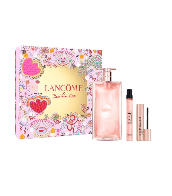 This set contains: Idôle Eau de Parfum 50ml - Idôle Eau de Parfum 10ml - Lash Idôle Flutter Extension 01 Noir 2ml