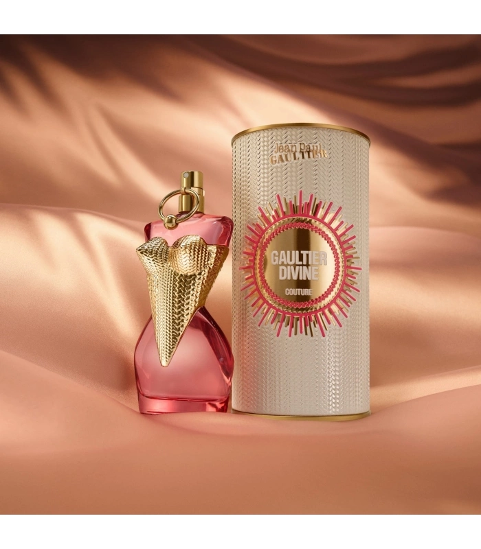 In Jean Paul Gaultier’s ateliers, the silhouette of Gaultier Divine Couture takes shape: a sensual eau de parfum with a touch of haute couture. This fruity amber fragrance, created by Quentin Bisch, reveals a precious and daring style with notes of juicy, vibrant raspberry, light and daring meringue, and intense, enveloping benzoin. Its lacquered pink bottle catches the eye, whilst its finely woven corset, pierced with gold, gives it a bespoke silhouette. More than just a fragrance, it is a fashion statement to wear on the skin. A statement of power.