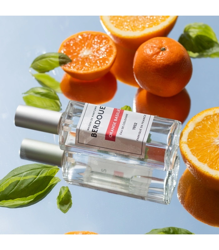 Orange Basil, a sunny, citrusy Eau de Cologne, 98% naturally derived.