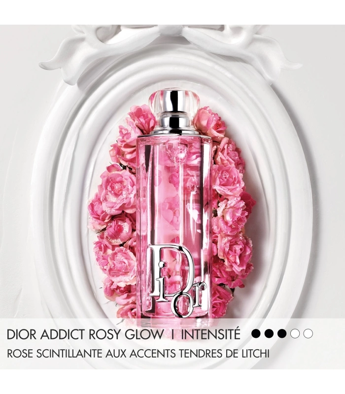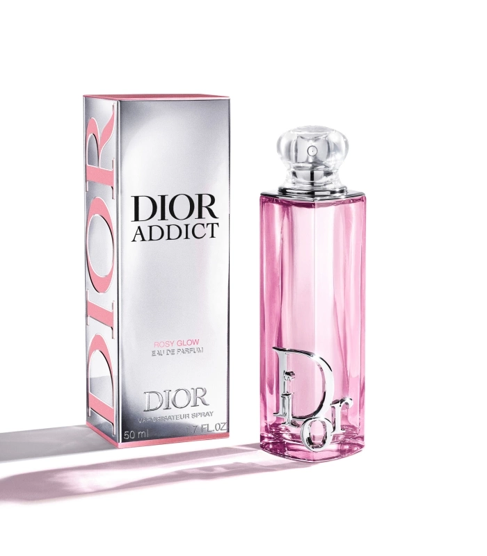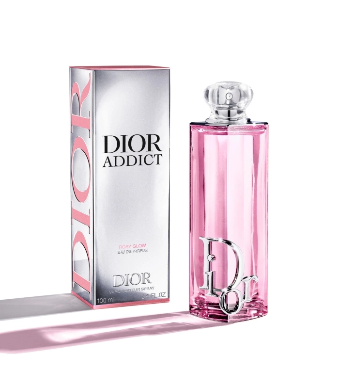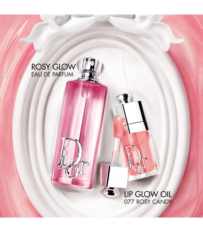 Spray Dior Addict Rosy Glow onto your pulse points – the neck and wrists. Pair it with Dior Addict Lip Glow Oil 077 Rosy Candy, Dior’s lip oil with a ‘sparkly¹’ finish.