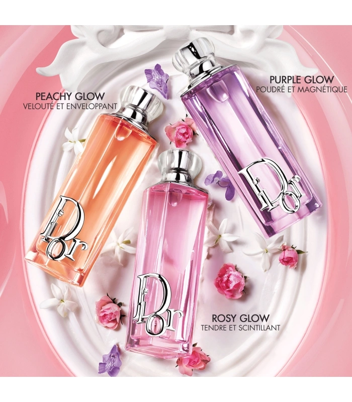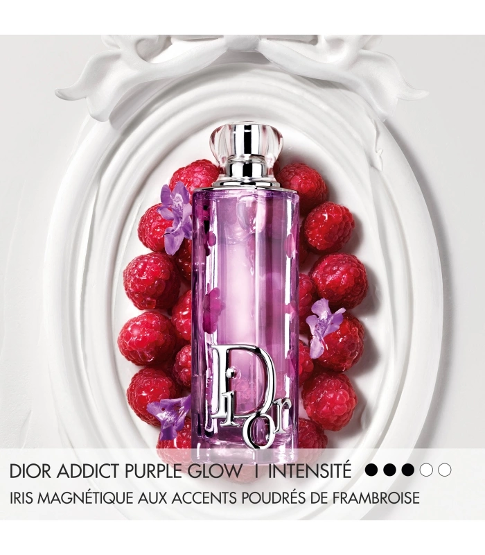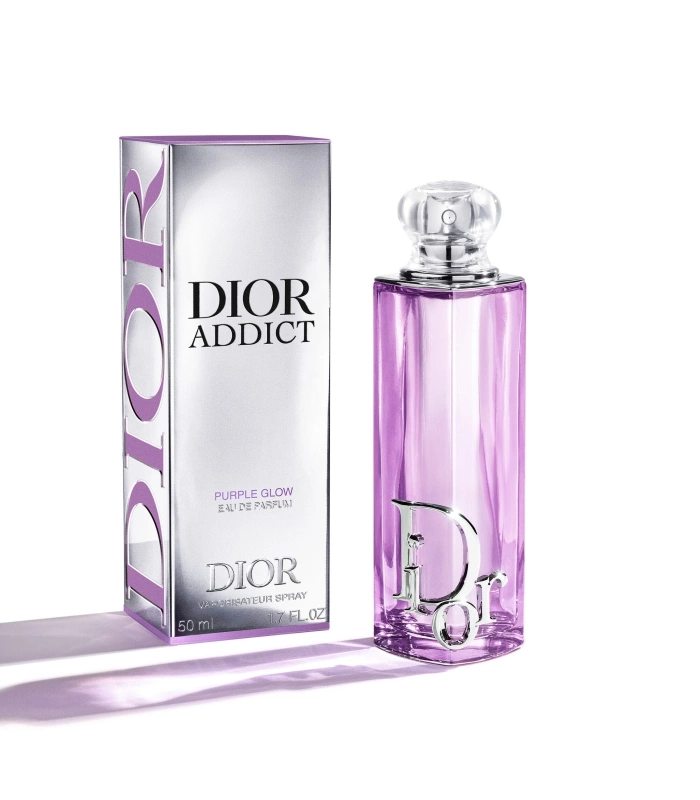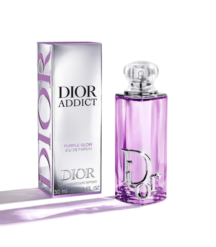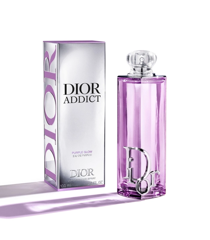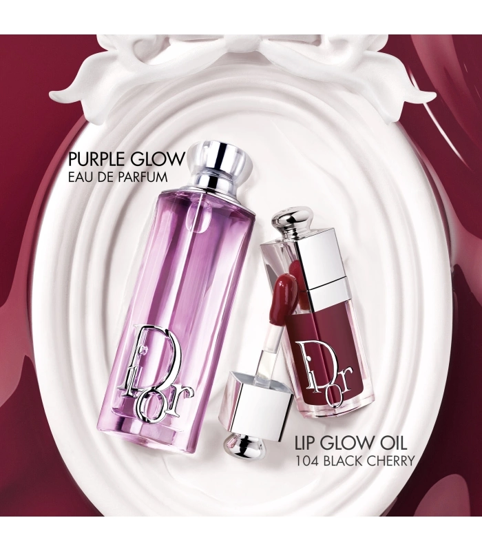 Spray Dior Addict Purple Glow onto your pulse points – the neck and wrists. Pair it with Dior Addict Lip Glow Oil 104 Black Cherry, the lip oil with a “glaze¹” finish.
