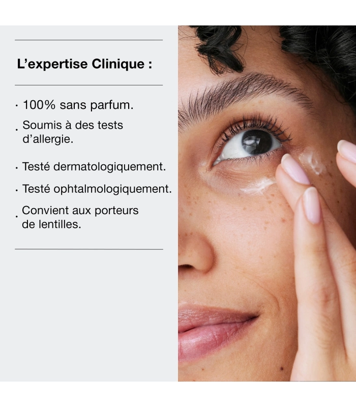 This treatment moisturizes the delicate skin around the eyes and helps reduce the appearance of puffiness, dark circles, and fine lines caused by dehydration. Its refreshing gel-cream texture absorbs quickly and helps eye makeup stay in place. The skin around the eyes is soft and visibly brighter. Also available in a rich balm texture for very dehydrated skin.